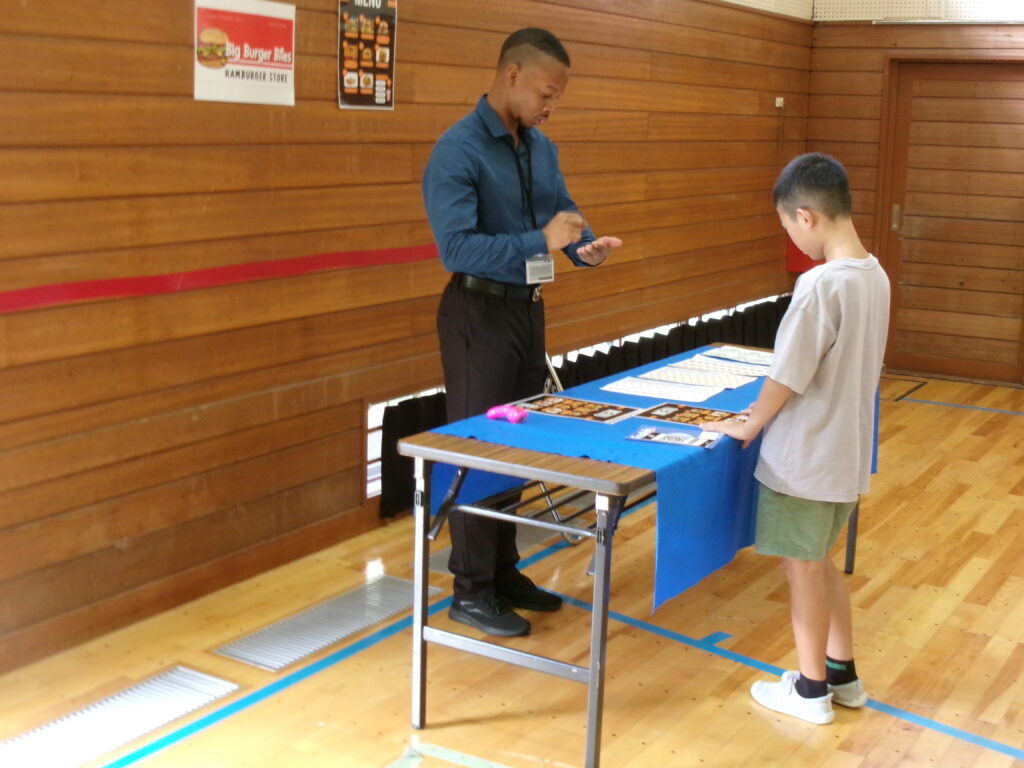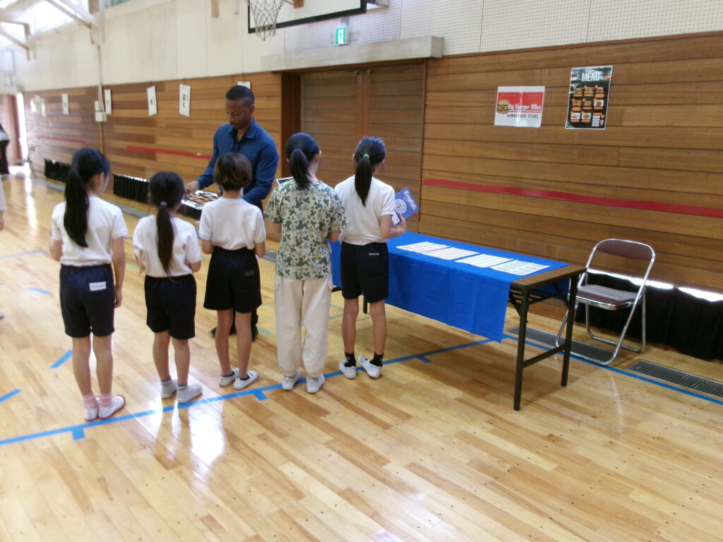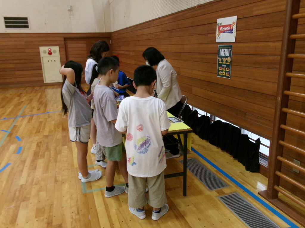 3・4年生は、pizza shop・ice cream shop・juice shop・hamburger shopでの買い物体験をしました。メニュー表を見て、欲しい商品を注文できました。お会計はキャッシュレスで、よりお買い物気分を味わえました。