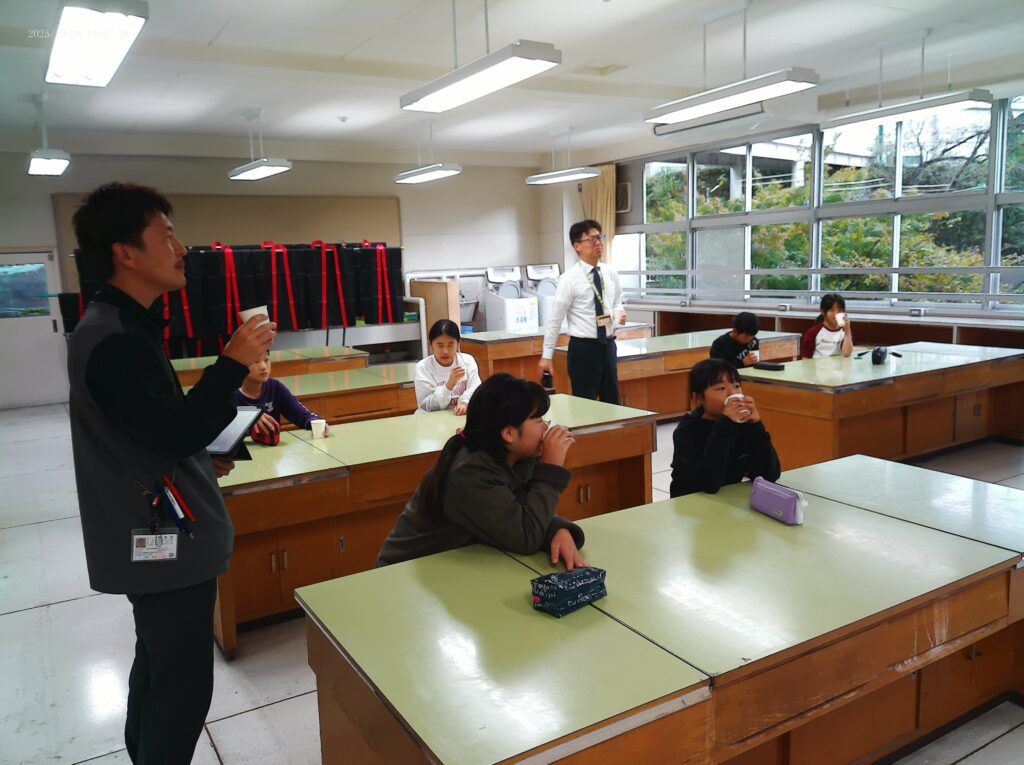 5年生が家庭科の授業で「出汁」について学習しました。給食センターの栄養士の先生に来ていただき、出汁のよさや、自分の生活にどのように生かしていくことができるかを教えていただきました。ご飯やお味噌汁がますますおいしく感じられそうです!
