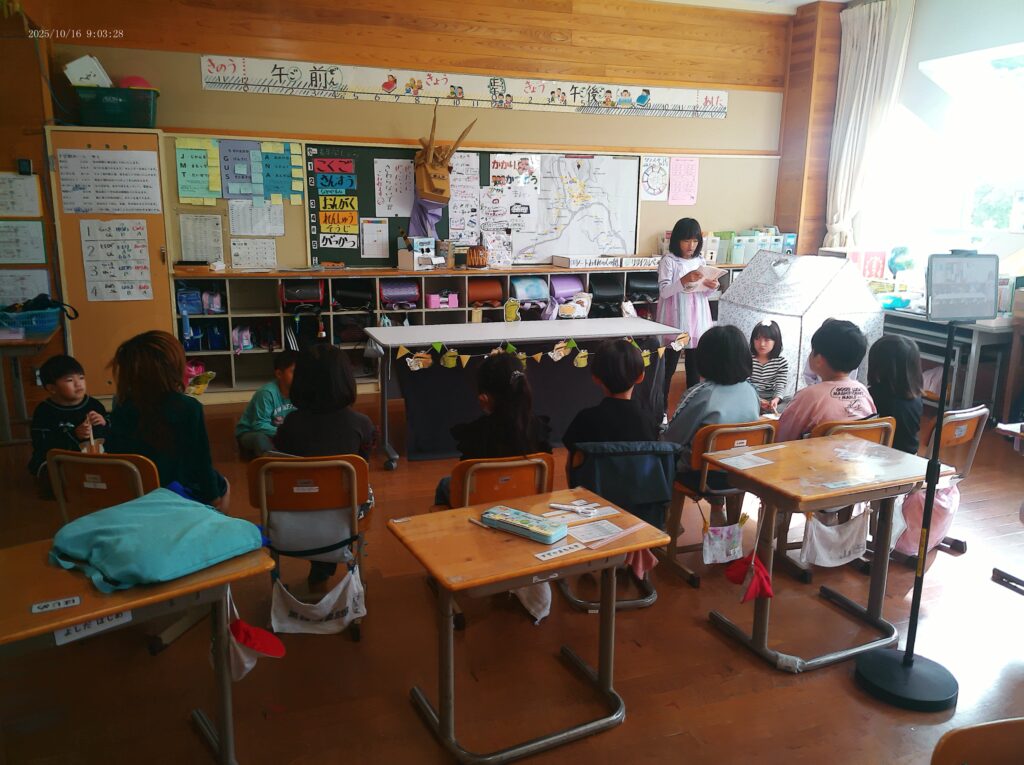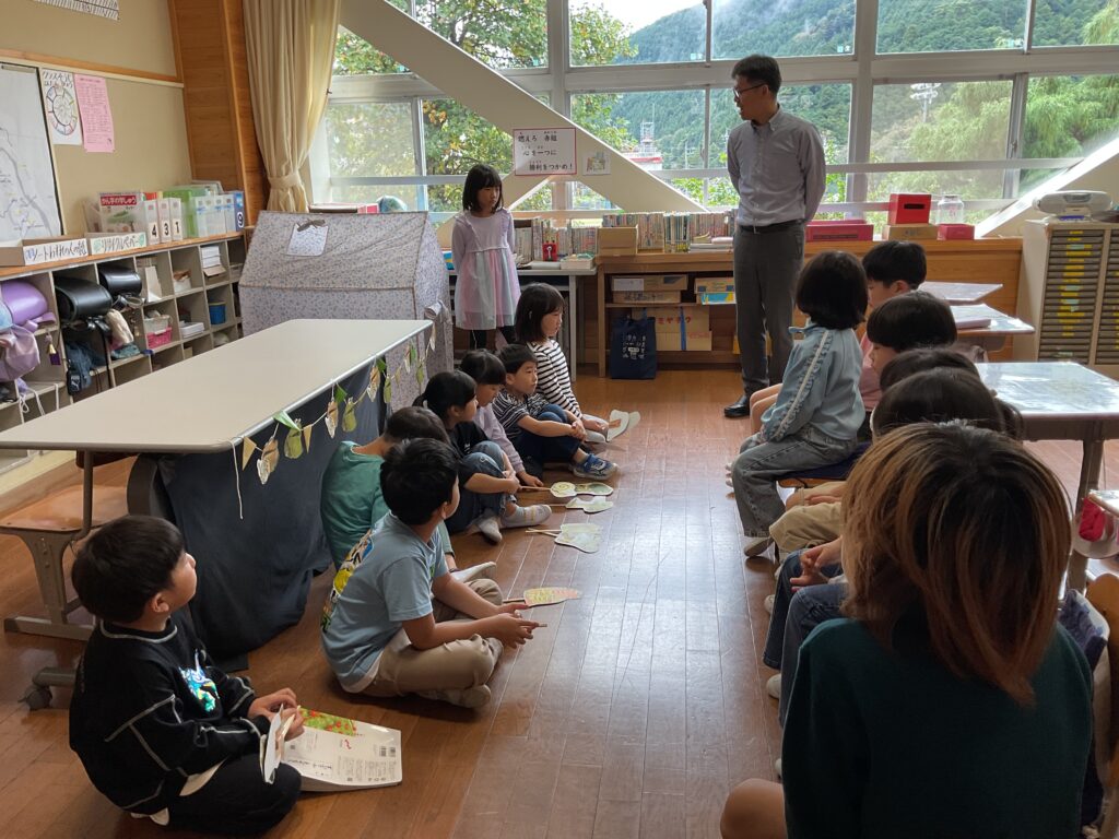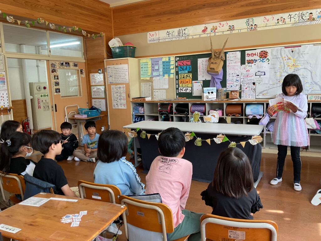 今年はアーノルド=ローベルさんの「ふたりはなかよし」シリーズが発売されてから55年の年でした。2年生は「GOGOカエルまつり」として、教科書にある「お手紙」以外にもシリーズの本をたくさん読みました。今日は自分の一番のお気に入りの場面をペープサート劇にして1年生に発表しました。読み取ったことや感じたことを上手に表現することができていました。