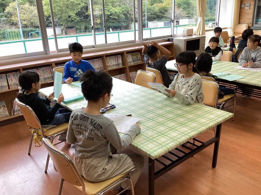 3年生が来週の「山のふるさと村学習」に向け、事前の交流学習のため古里小学校におじゃましました。2年生までに生活科などで交流学習を重ねてきているので、スムーズに話合いに入ることができました。グループごとの目標、役割も決まり、来週の山のふるさと村での交流がますます楽しみになりました。よいお天気になりますように!