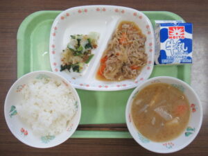 豚肉の生姜炒めは新メニューです。豚肉、人参、玉ねぎに加えて、切干大根が入っています。切干大根は少し硬めに戻して入れることで、野菜から出た水分やお肉の脂を吸ってうま味たっぷりになりました。